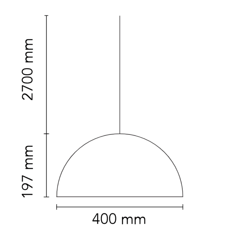 Dimensions (Small) : diamètre 40 cm, hauteur ~20 cm, cordon 2700 mm.
